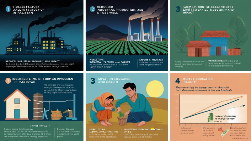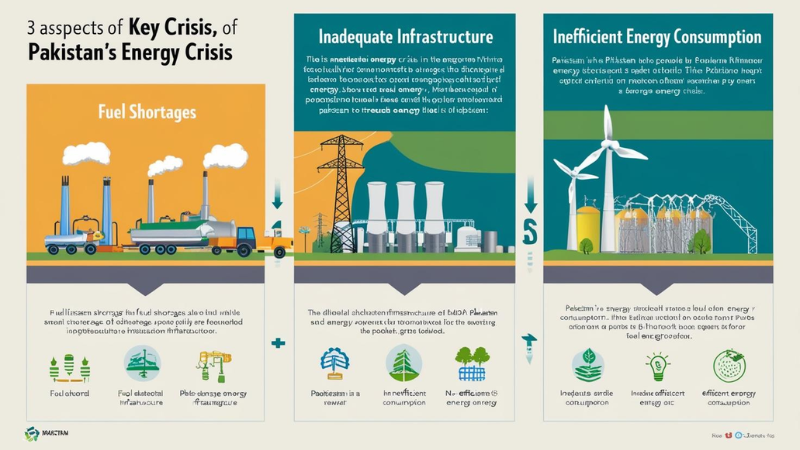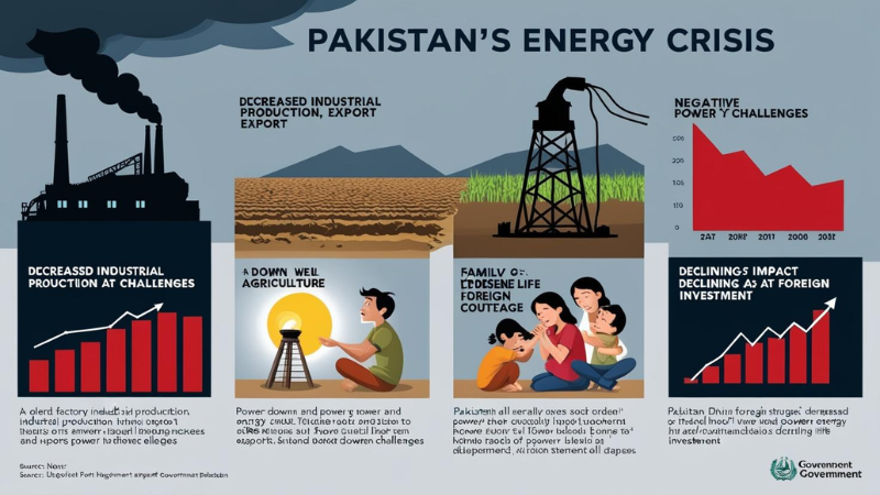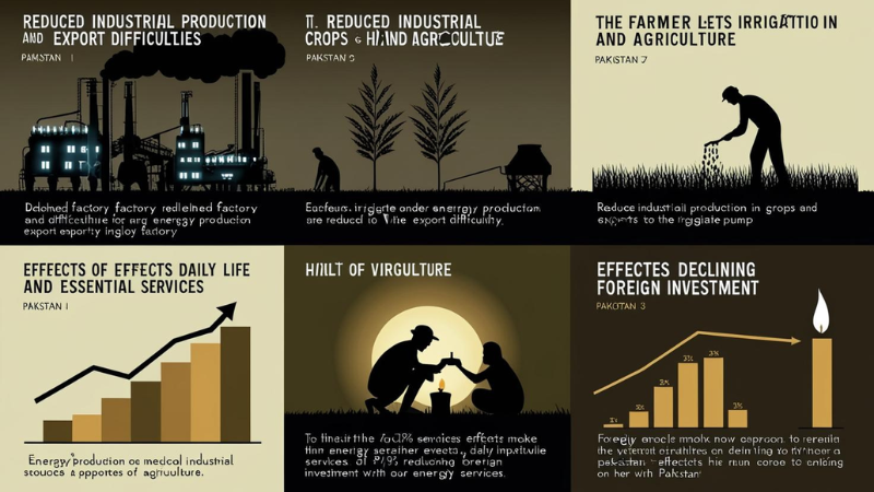 Energy crisis in Pakistan due to power load shedding, gas shortage and resource scarcity, negative impact on people and economy.